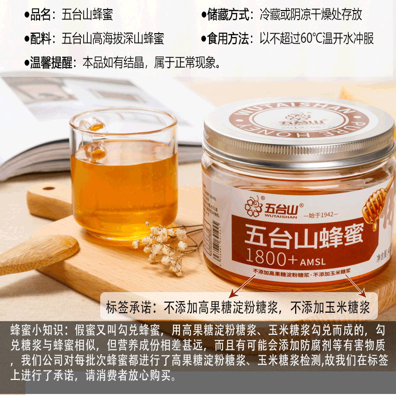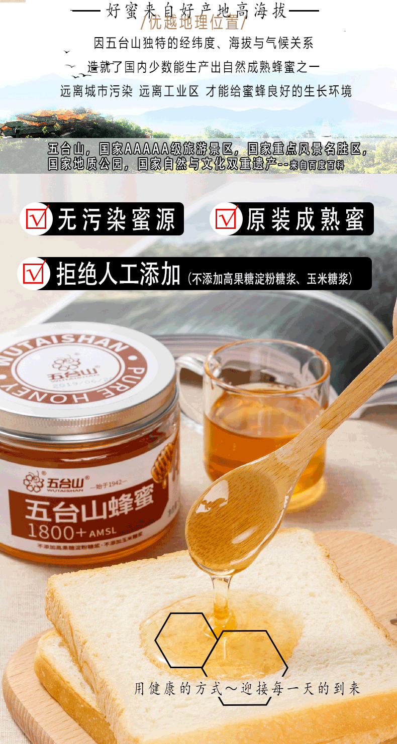 五臺(tái)山蜂蜜1800+AMSL蜜源430g/瓶