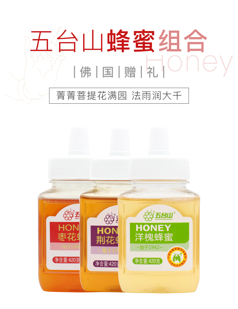 五臺(tái)山蜂蜜 棗花蜂蜜 洋槐花蜂蜜 荊花蜂蜜 420g*3瓶