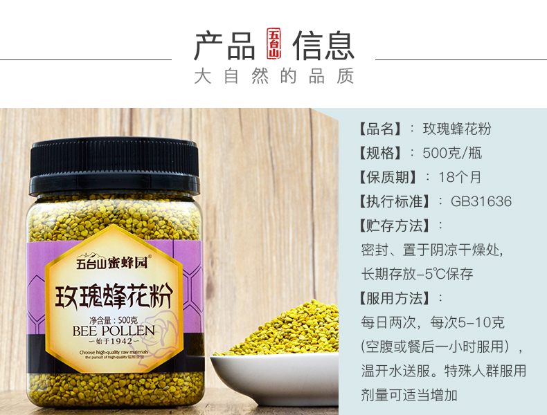 五臺山蜜蜂園玫瑰蜂花粉500克
